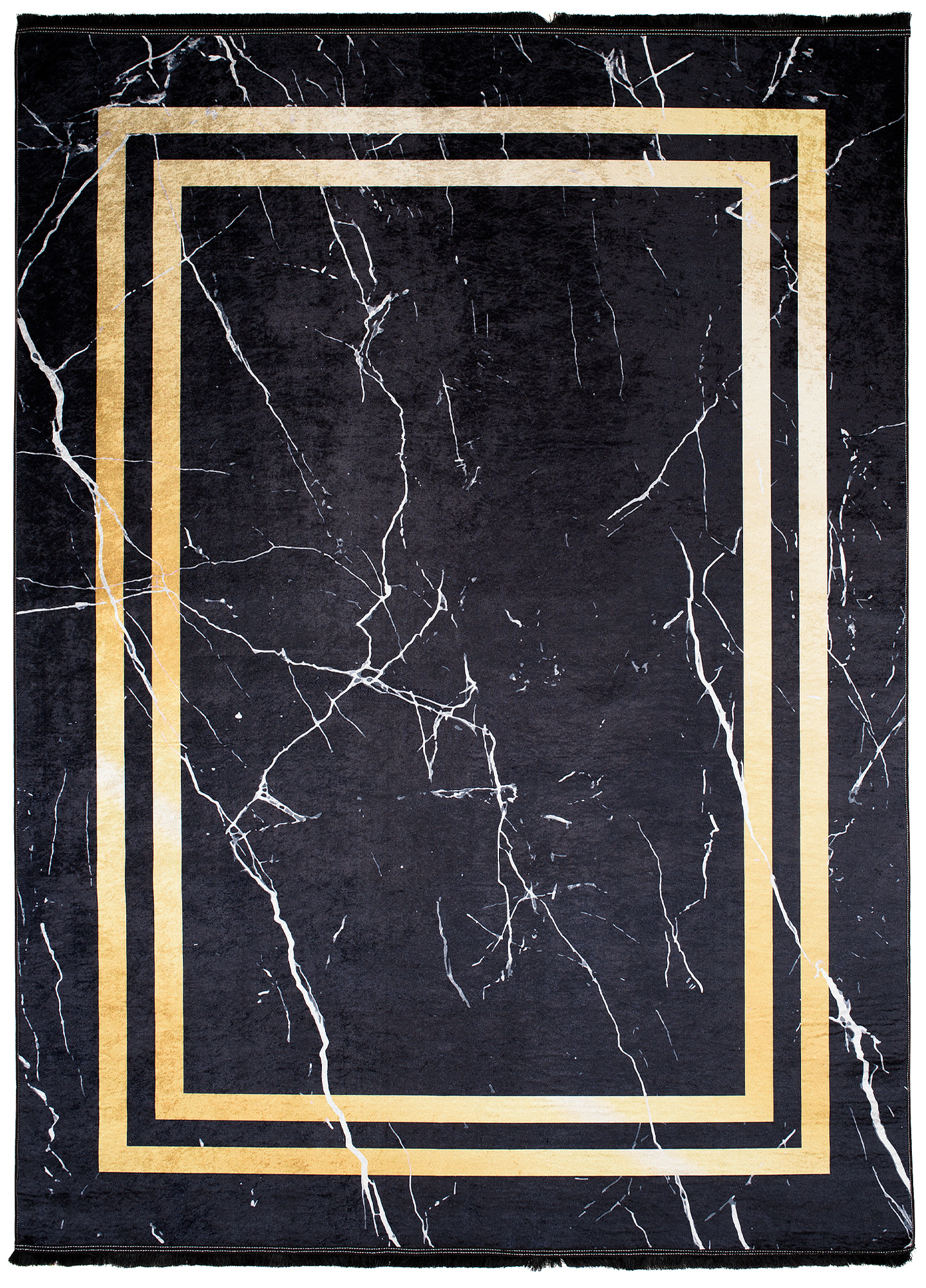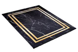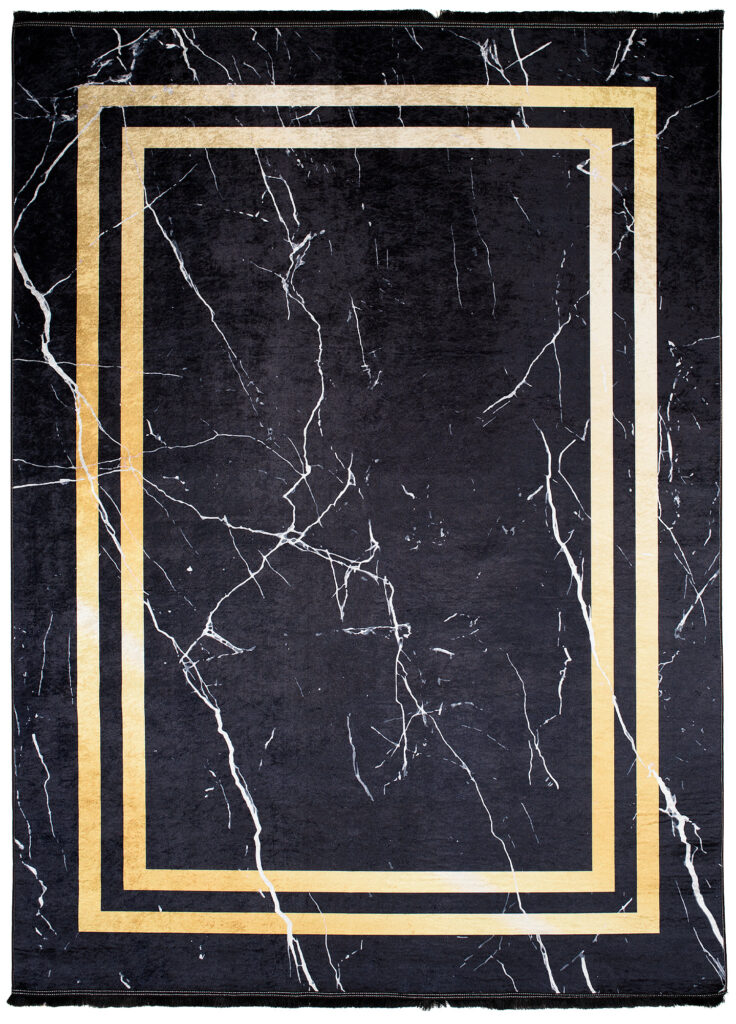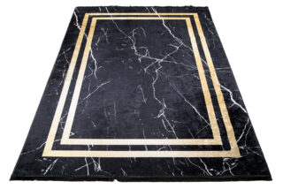 Dywan Toscanaz Frędzlami Czarny Złote Ramki