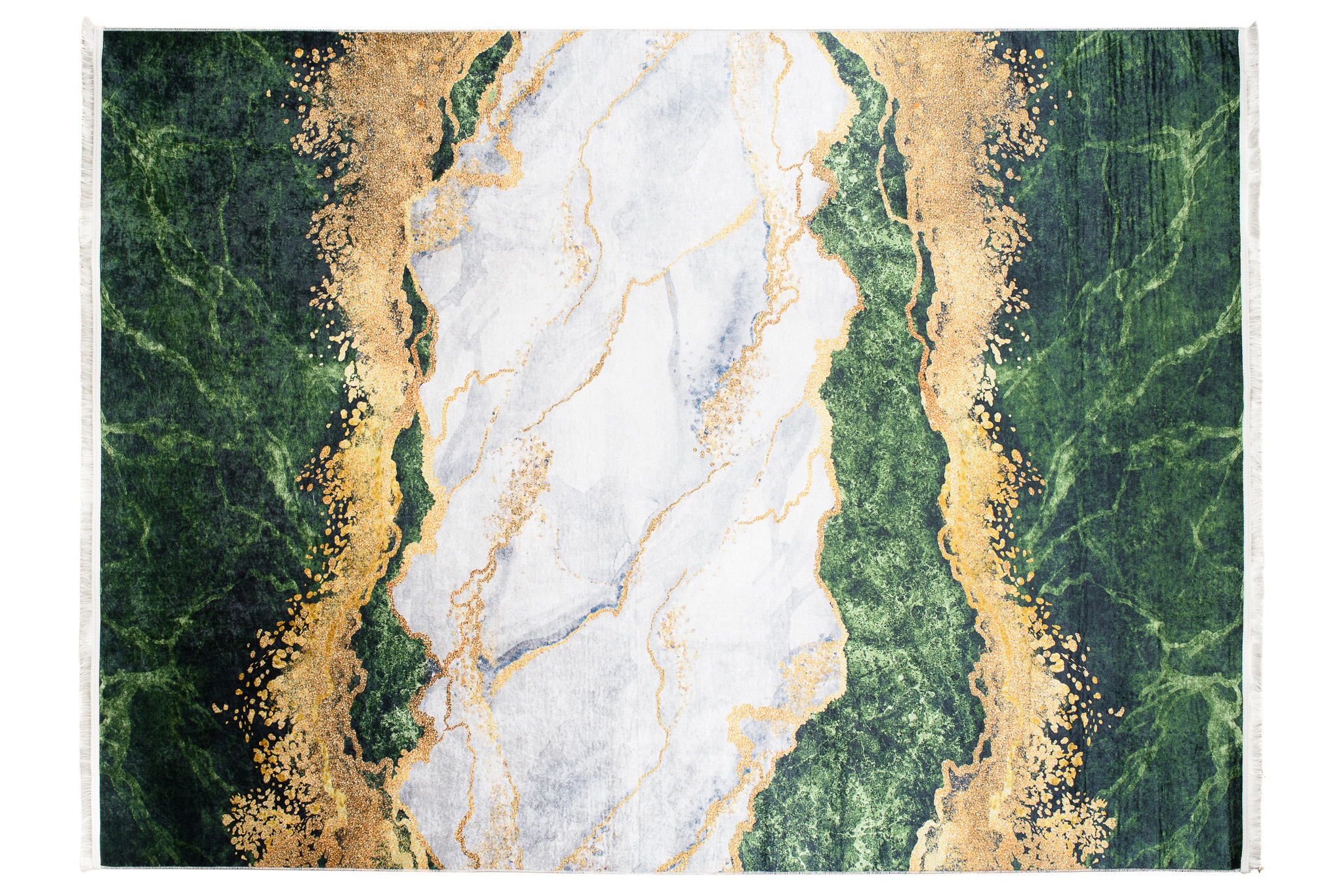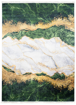Dywan Toscanaz Frędzlami Zielono Szaro Złoty