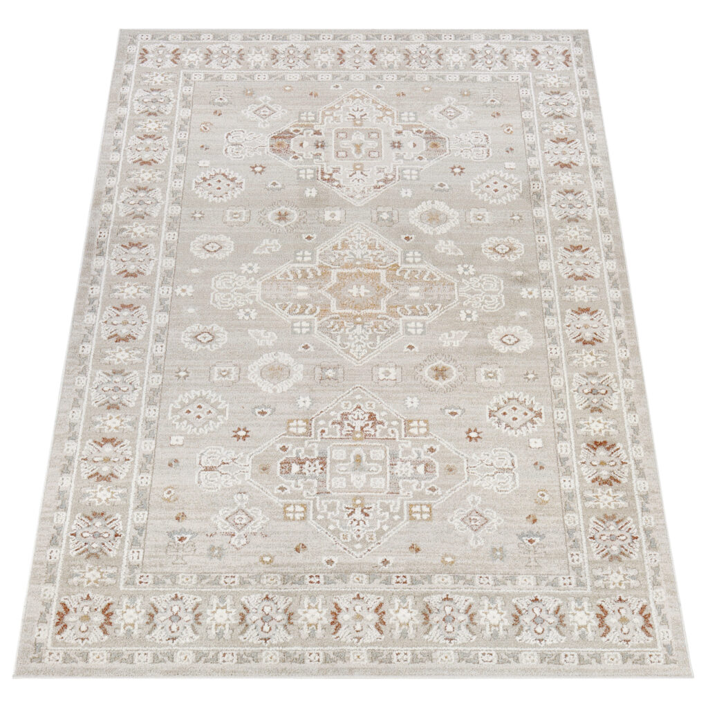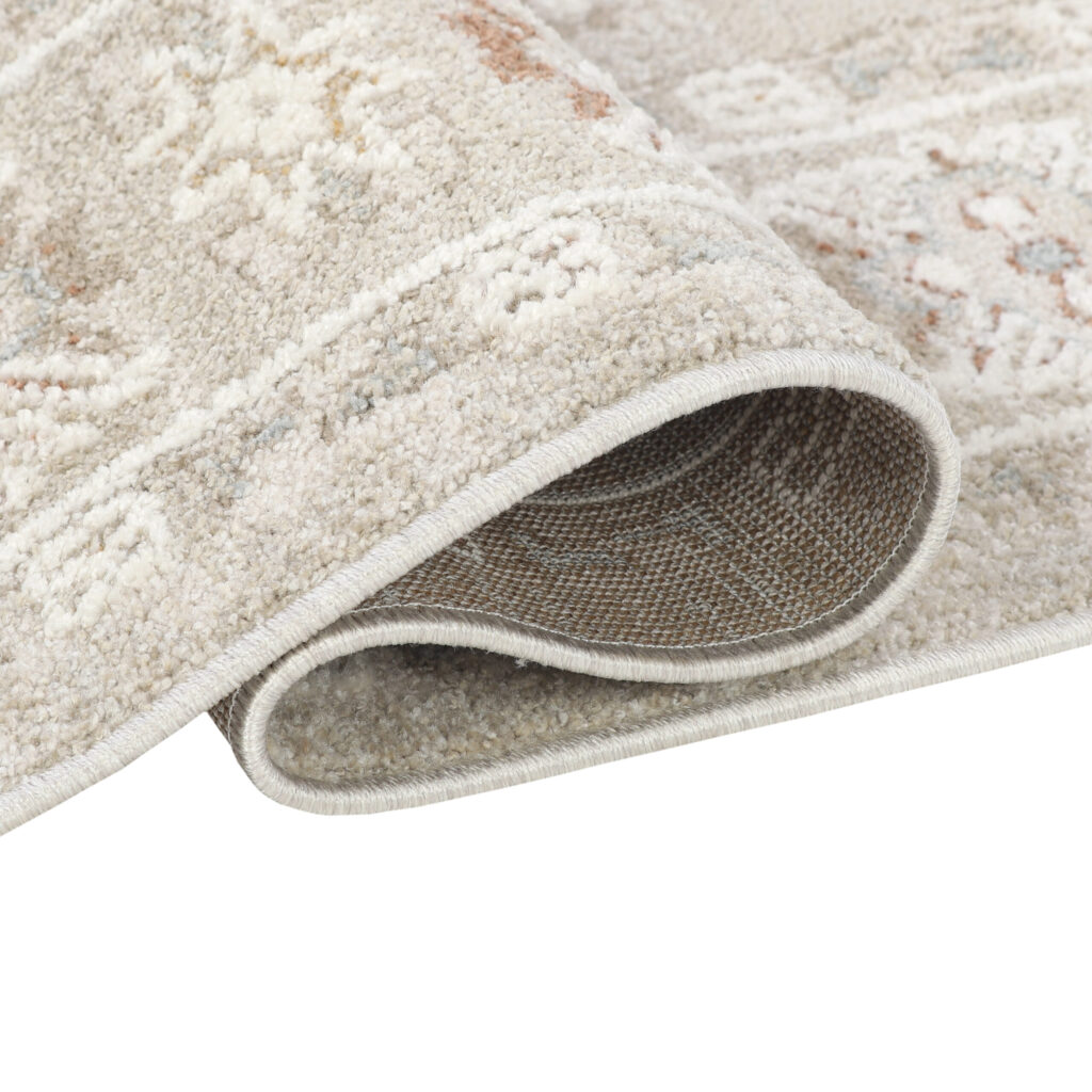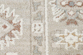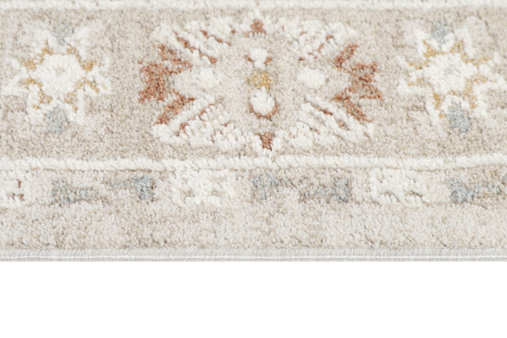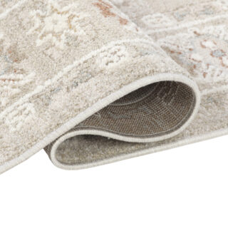 Styl i aranżacja: Ten dywan w orientalnym stylu doskonale wpasuje się w aranżacje klasyczne, rustykalne, vintage oraz boho. Dzięki dominującym odcieniom beżu i subtelnym akcentom brązu oraz terakoty, idealnie komponuje się z drewnianymi meblami, neutralnymi sofami oraz dodatkami w ciepłych barwach, takich jak złoto, ceglasta czerwień czy oliwkowa zieleń.