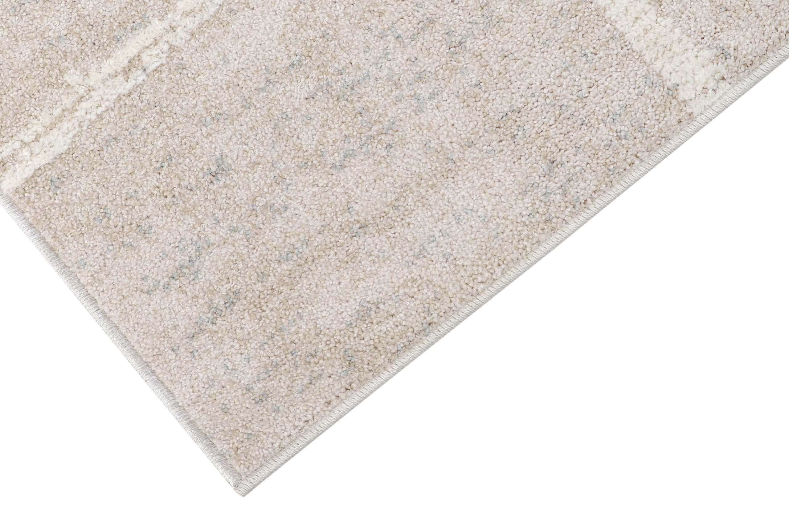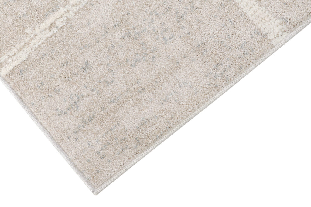 Styl i aranżacja: Ten dywan w nowoczesnym geometrycznym wzorze sprawdzi się w przestrzeniach minimalistycznych, skandynawskich, loftowych oraz modern classic. Neutralna paleta barw – beże, kremy i biel – czyni go uniwersalnym dodatkiem, który świetnie współgra z jasnymi meblami, drewnianymi akcentami i dodatkami w pastelowych tonacjach lub odcieniach czerni i złota.