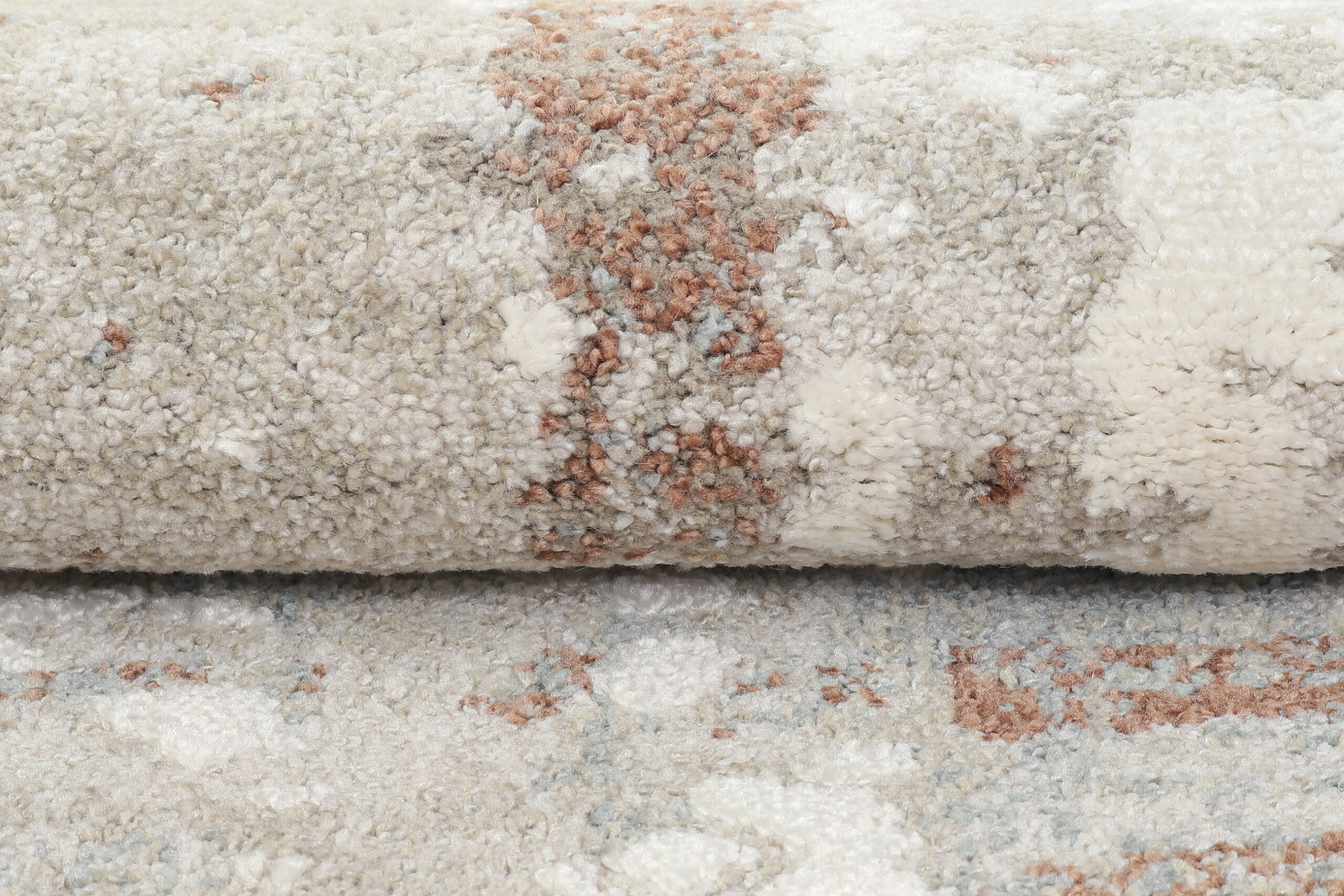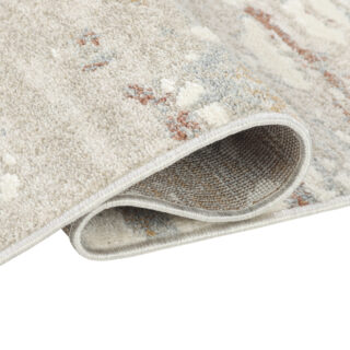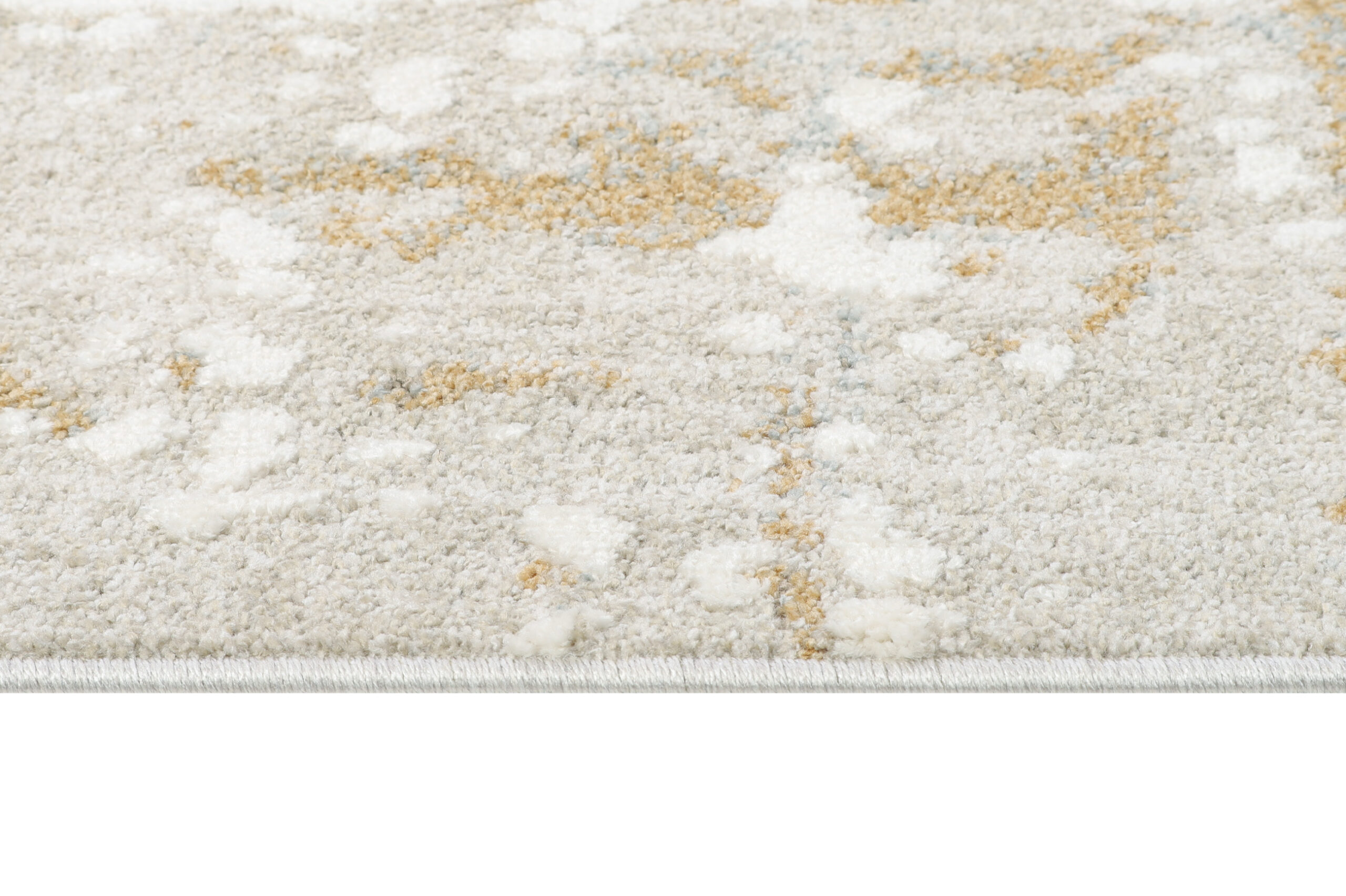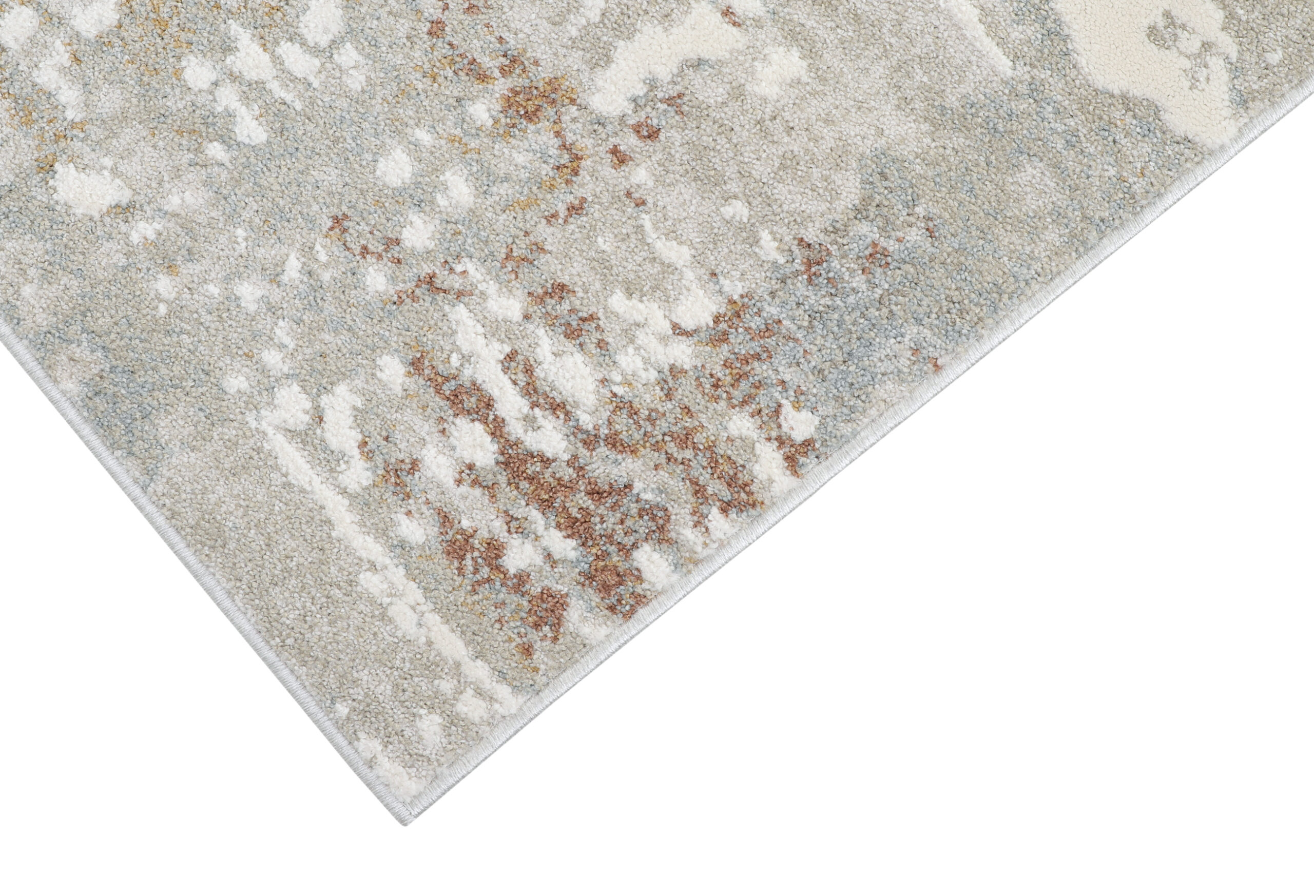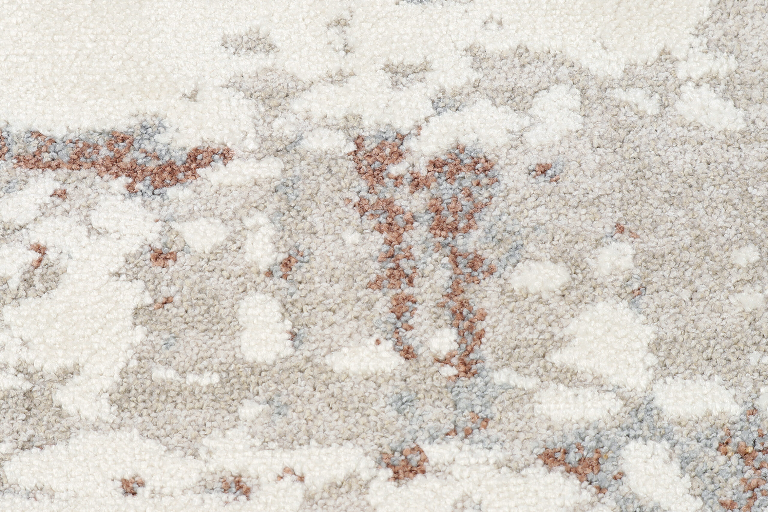 Styl i aranżacja: Dywan z abstrakcyjnym wzorem w delikatnych odcieniach beżu, bieli, złota i ceglastej czerwieni idealnie pasuje do pomieszczeń w stylu nowoczesnym, industrialnym oraz minimalistycznym. Jego neutralna kolorystyka świetnie komponuje się z jasnymi meblami, drewnianymi akcentami i dodatkami w pastelowych lub ziemistych odcieniach.