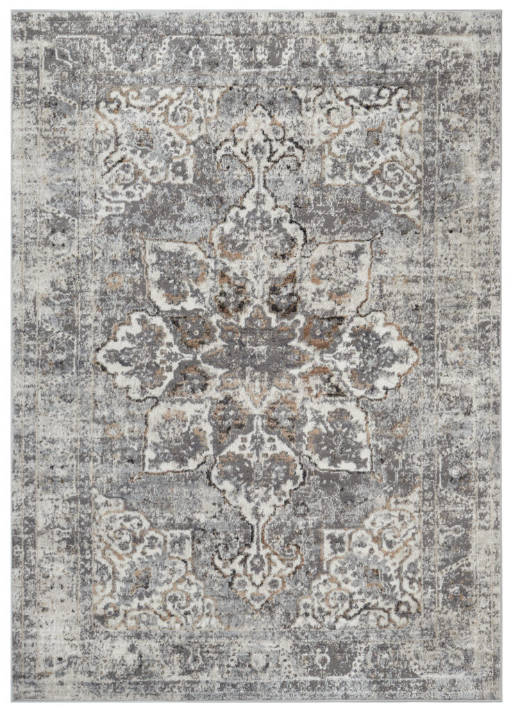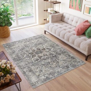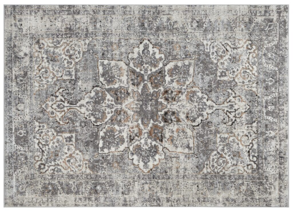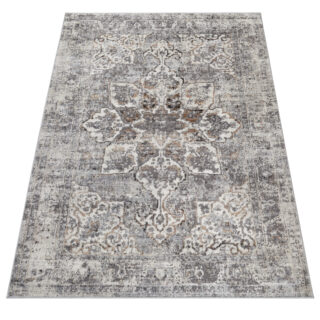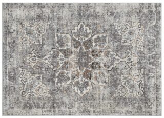 W wyjątkowym modelu z kolekcji Valley nowoczesność łączy się z klasycznym wzornictwem. Misterne zdobienia znane z ciemnych perskich dywanów o intensywnych barwach znajdują tutaj towarzystwo wśród spokojnych jasnych beżów i szarości. Florystyczne wzory oraz geometryczne ramy nadają dywanowi orientalnego stylu. Będzie on idealnym wyborem w pomieszczeniu urządzonym w stylu boho lub rustykalnym. Idealnie dopasuje się do mebli oraz dodatków wykonanych z naturalnych surowców oraz o jednolitych barwach. Delikatnie postarzany wzór świetnie dopełni meble z podobnym zamierzonym efektem. Wysokiej jakości włókno polipropylenowe sprawia, że dywan jest niezwykle odporny na ścieranie oraz uszkodzenia. Dywan ma piękny połysk oraz przestrzenny efekt, dzięki niewielkiemu dodatkowi poliestru.