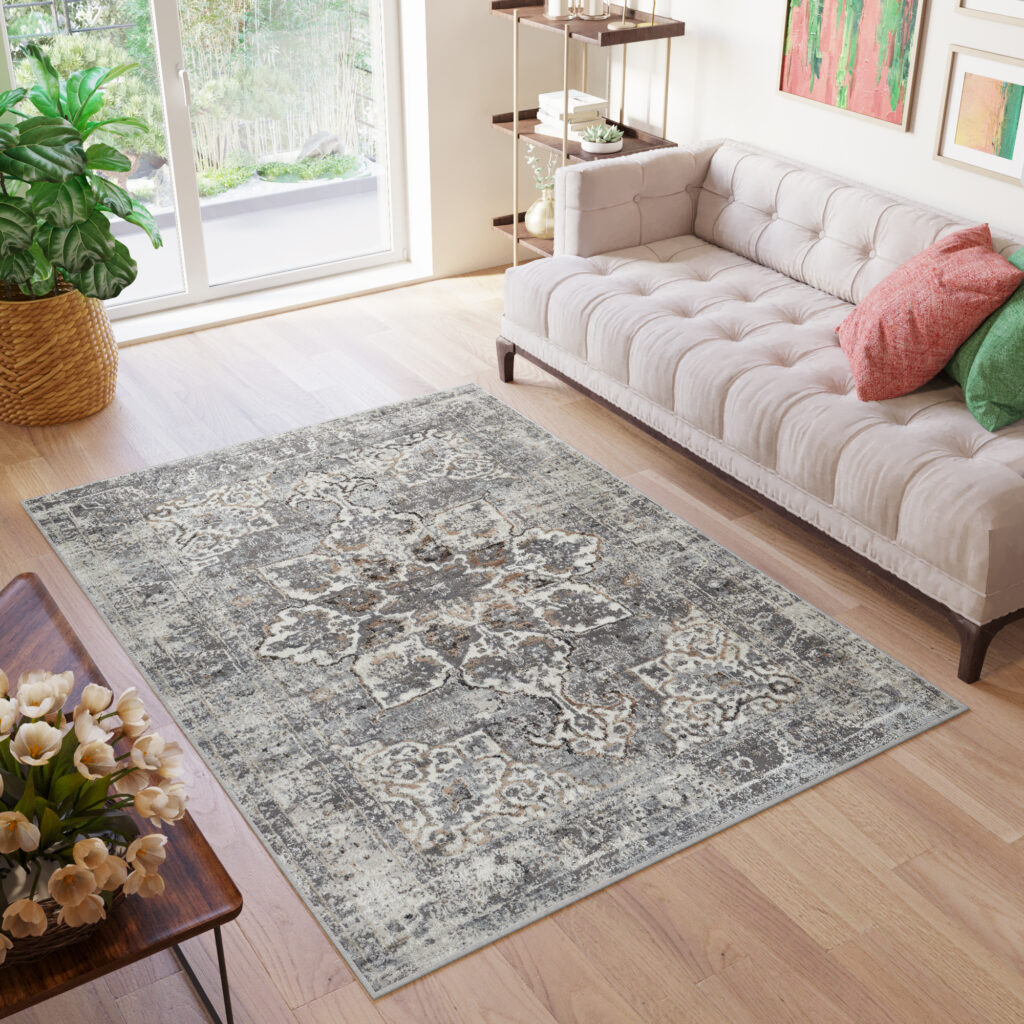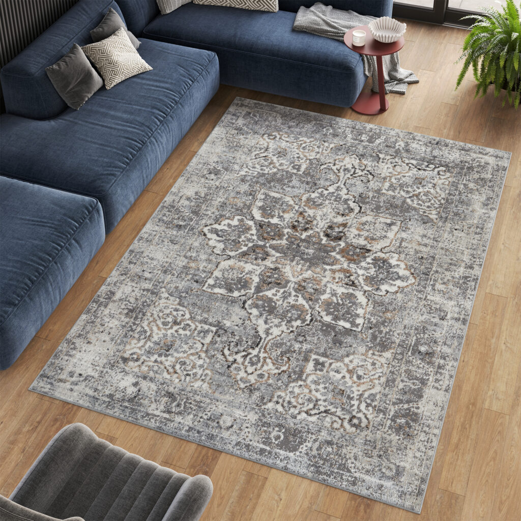 Dywan ValleyCiemny Szary Kwiatowa Rozeta