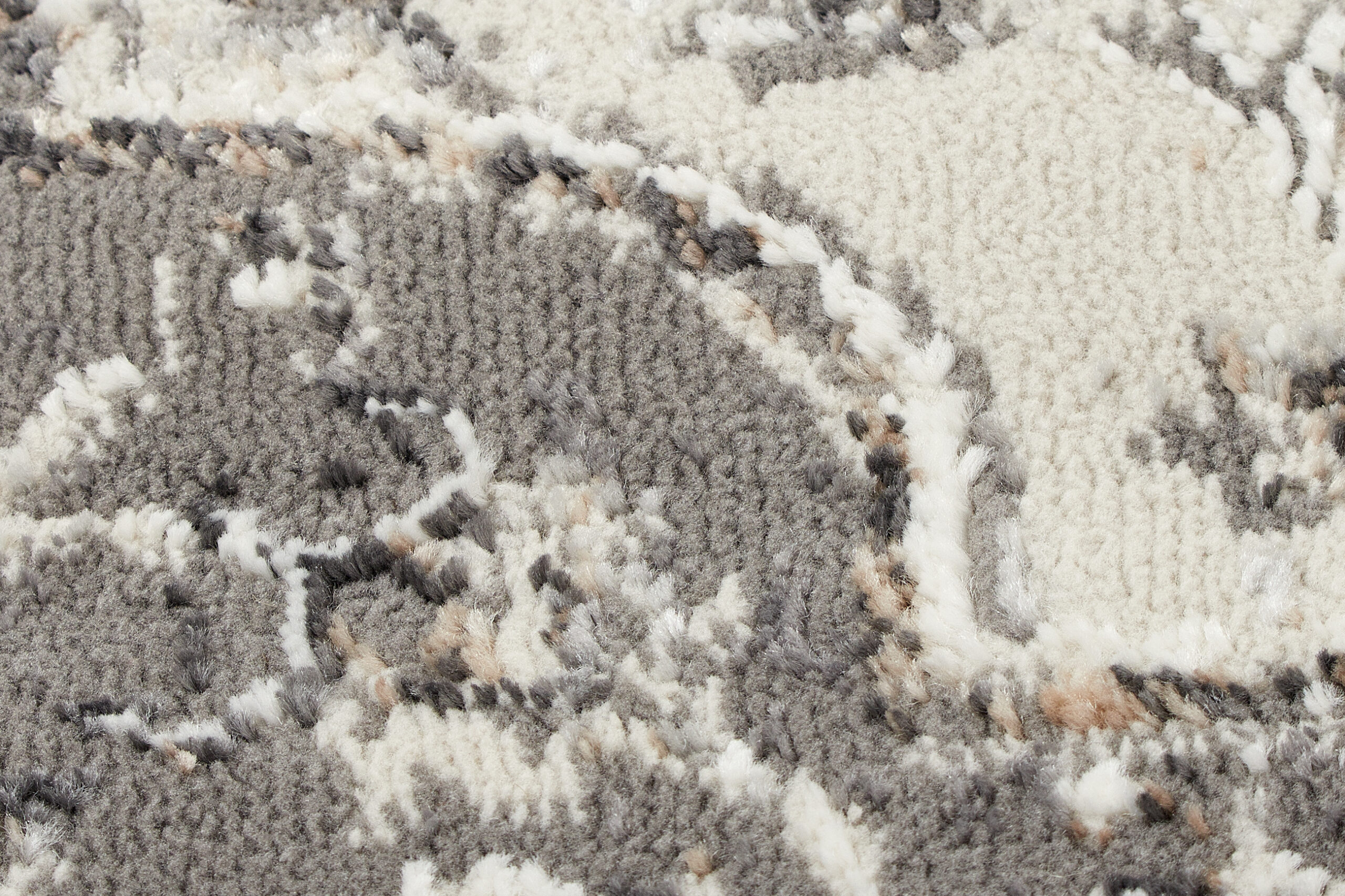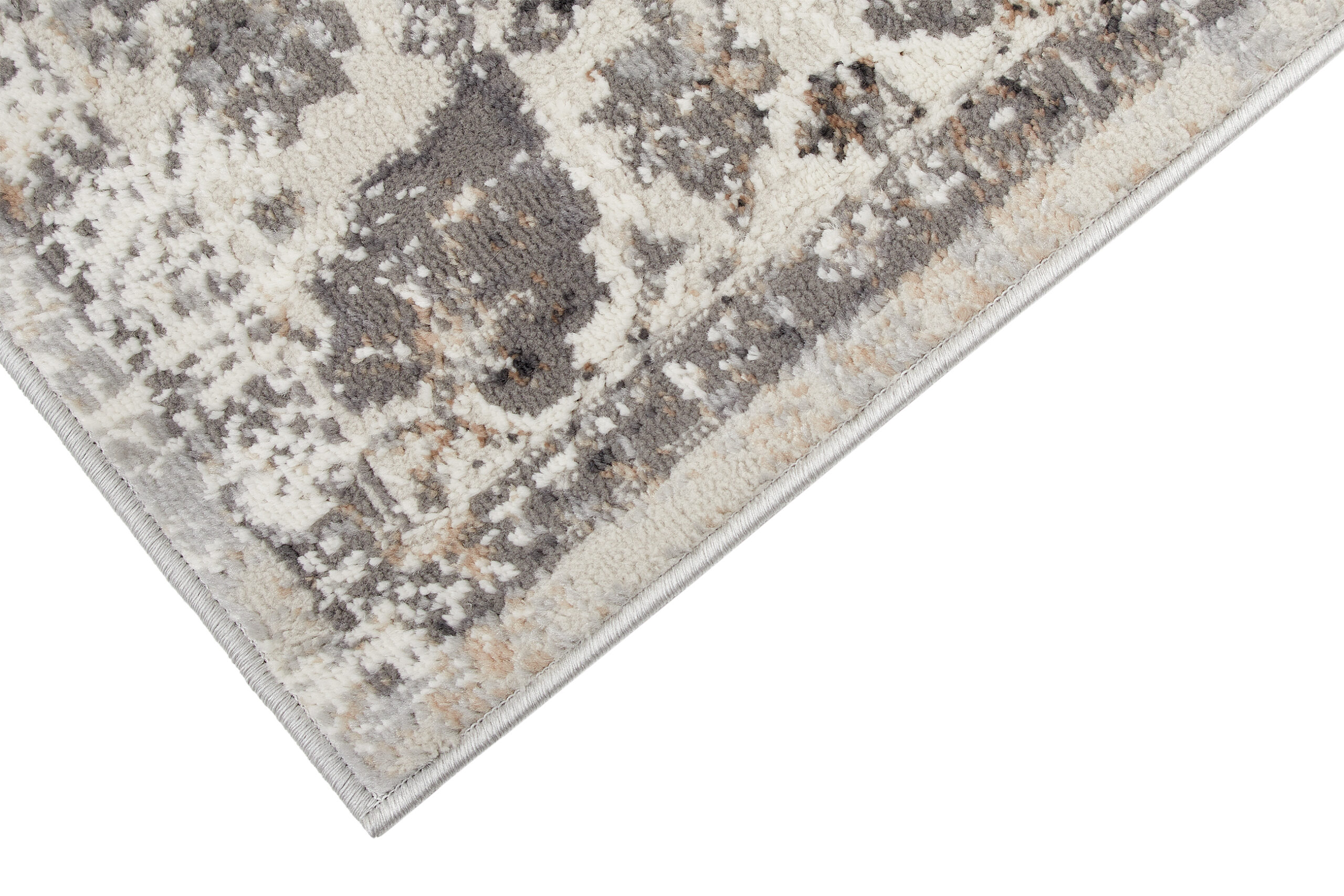 Dywan najlepiej prezentuje się na jasnych podłogach, takich jak bielone drewno czy jasne panele, tworząc wyrazisty kontrast, ale równie dobrze sprawdzi się na ciemniejszych powierzchniach, wprowadzając spójność do wnętrza. Ciemnoszary dywan z ramką to również praktyczny wybór – jego wytrzymałe włókna są odporne na ścieranie, a certyfikat jakości potwierdza bezpieczeństwo użytkowania.