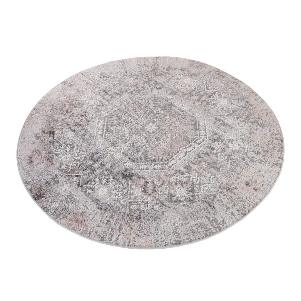 Dywan ValleyOkrągły Szary Beżowy Vintage Ornamenty