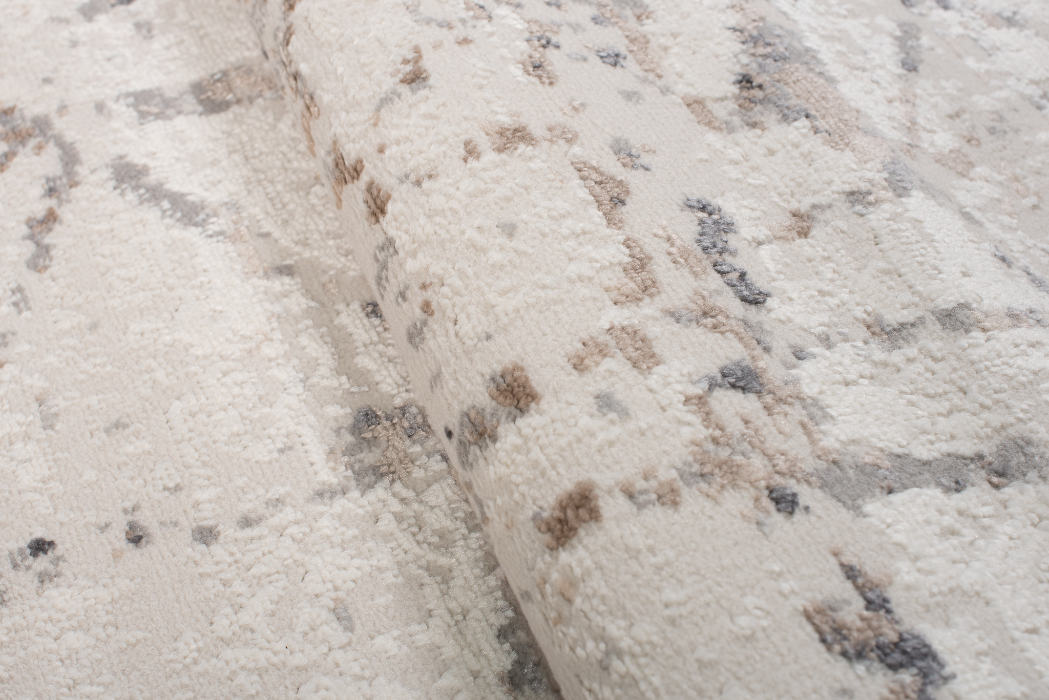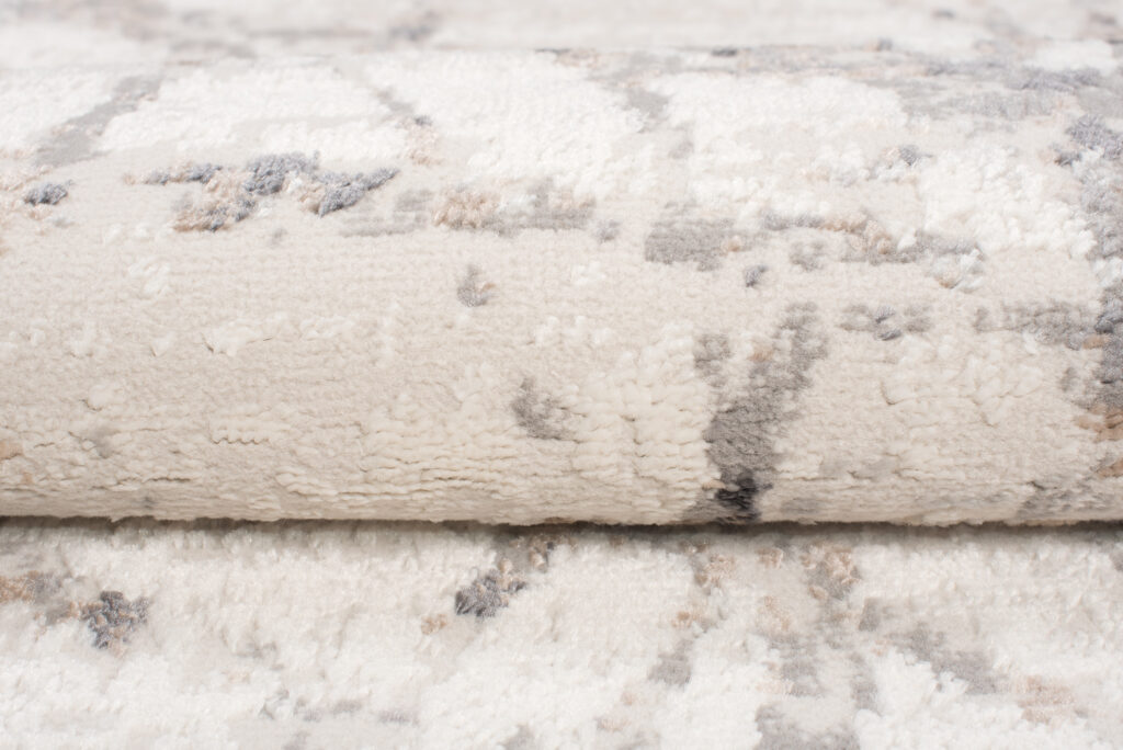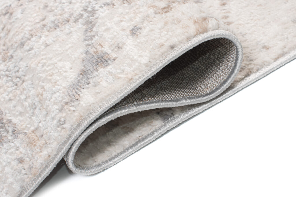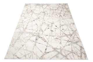 Nowoczesny kremowy dywan Valley odświeży nudny salon oraz rozświetli ciemną sypialnię. Beżowa kolorystyka idealnie wpasuje się do większości stylów wnętrzarskich, w których dominują podobne jasne i spokojne barwy. Artystyczne wzory na jego powierzchni przypominają pajęczą sieć i sprawiają, że produkt ten z pewnością przypadnie do gustu miłośnikom sztuki nowoczesnej. Dzięki prostokątnemu kształtowi dywan będzie współgrał z większością pomieszczeń, a szeroki wybór rozmiarów ułatwi dopasowanie go zarówno do małych, jak i dużych powierzchni. Dzięki niewielkiemu dodatkowi poliestru dywan ma piękną lśniącą poświatę, która sprawia wrażenie, iż włosie jest niezwykle gładkie i miękkie. Produkt został w większości wykonany z wysokogatunkowego polipropylenu, materiału wyjątkowo wytrzymałego na eksploatację oraz uszkodzenia mechaniczne.