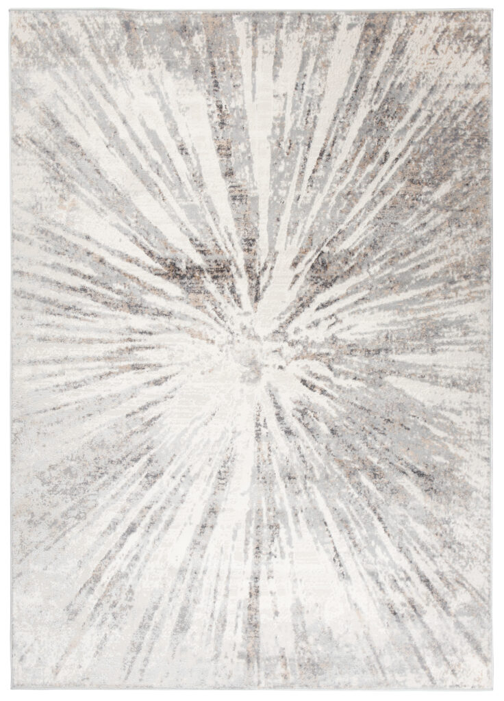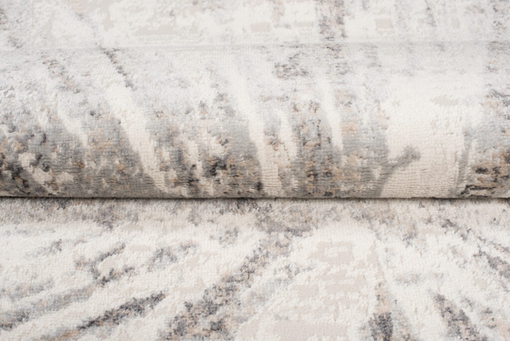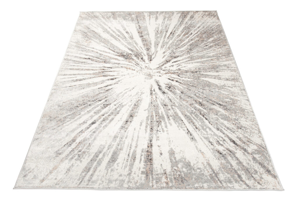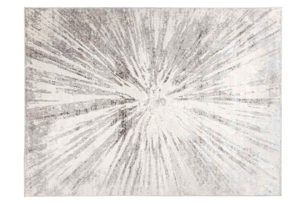 Dywan z serii Valley cechuje się wyjątkowym kremowym kolorem i ciekawą grafiką, która przykuje wzrok każdego gościa. Wzór na dywanie przypomina rozproszony promień słońca, celowo postarzony metodą znaną ze stylu wnętrzarskiego shabby chic. Idealnie wpisze się w nowoczesne, jasne przestrzenie, w których królują dodatki o podobnych barwach. Dywan przypadnie do gustu miłośnikom nieoczywistych wzorów oraz tych, którzy interesują się sztuką nowoczesną. Idealnie będą do niego pasować komplety wypoczynkowe w kremowych oraz beżowych odcieniach. Dzięki połączeniu dwóch surowców, polipropylenu oraz poliestru, dywan zyskuje ciekawy efekt przestrzenny, który dodatkowo podbija niecodzienny wzór na jego powierzchni. Krótkie włosie sprawia, że dywan sprawia wrażenie niezwykle lekkiego, dzięki czemu wprowadzi powiew świeżości do nowego wnętrza. Idealny jako ozdoba salonu oraz sypialni, sprawdzi się także jako chodnik do przedpokoju, dzięki szerokiemu wyborowi rozmiarów.