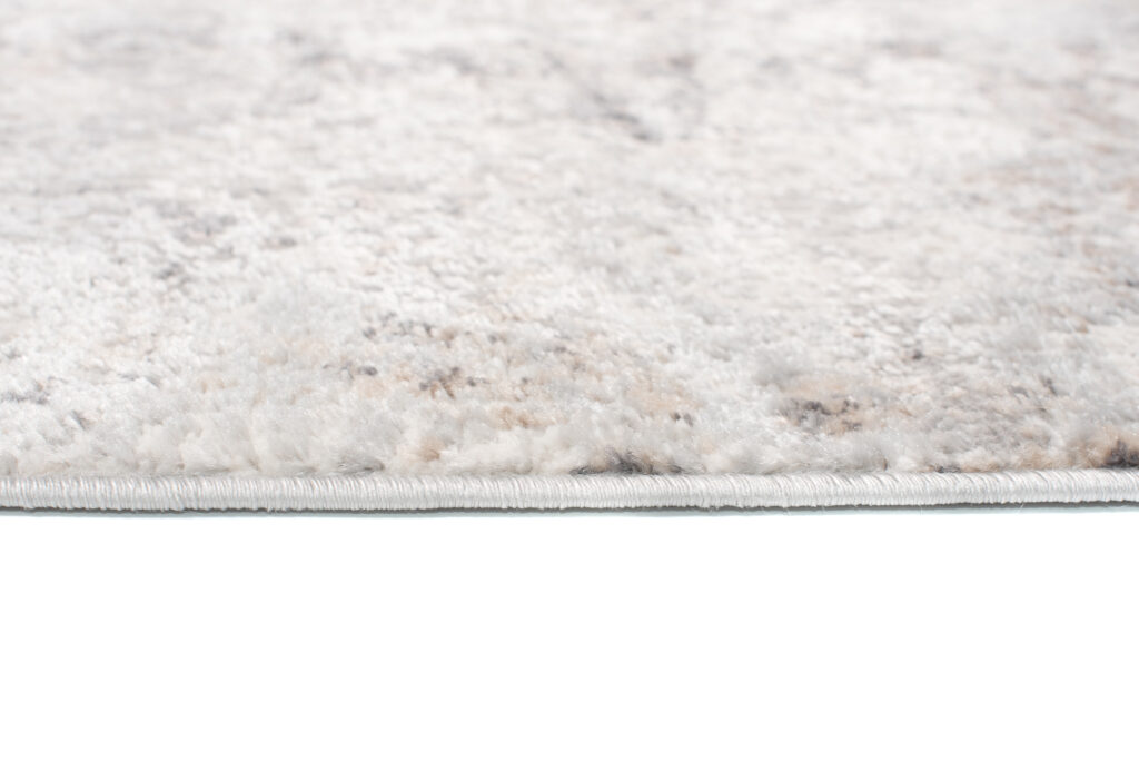 Orientalne ornamenty zdobią powierzchnię tego wyjątkowego dywanu z kolekcji Valley. Nowoczesne wydanie wszystkim znanych dywanów perskich zachwyca swoją nową formą. Misternie zdobione ornamenty z elementami florystycznymi zostały potraktowane ciekawym efektem celowego postarzenia. Całość utrzymana jest w jasnych, kremowych barwach z delikatnym dodatkiem beżu i czerni. Dywan wpisze się idealnie we wnętrza w nowoczesnym stylu, oraz w salonach, gdzie królują aranżacje eklektyczne lub boho. Bogate zdobienia świetnie połączą się z gładkimi dodatkami o jednolitych barwach, dzięki czemu pomieszczenie uniknie chaosu oraz przeciążenia mnogością wzorów i kolorów. Krótkie polipropylenowe włosie z niewielkim dodatkiem poliestru tworzy ciekawy efekt, dzięki czemu runo dywanu zdaje się delikatnie połyskiwać.