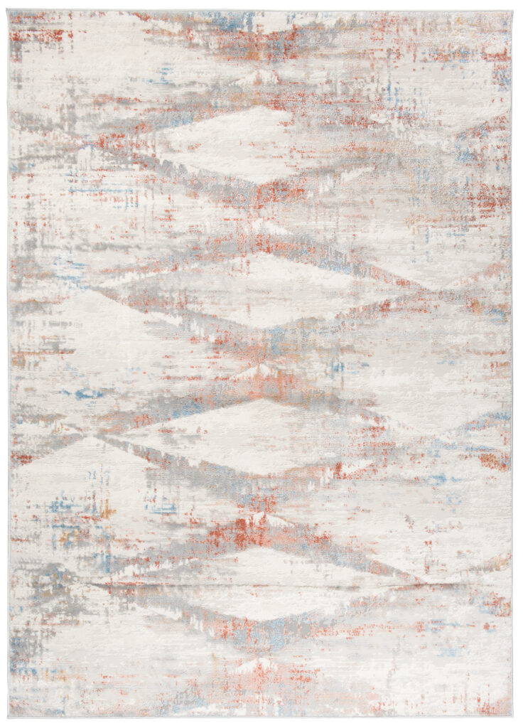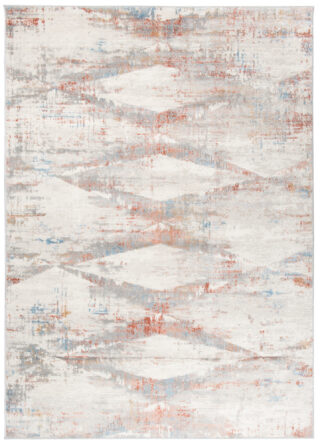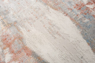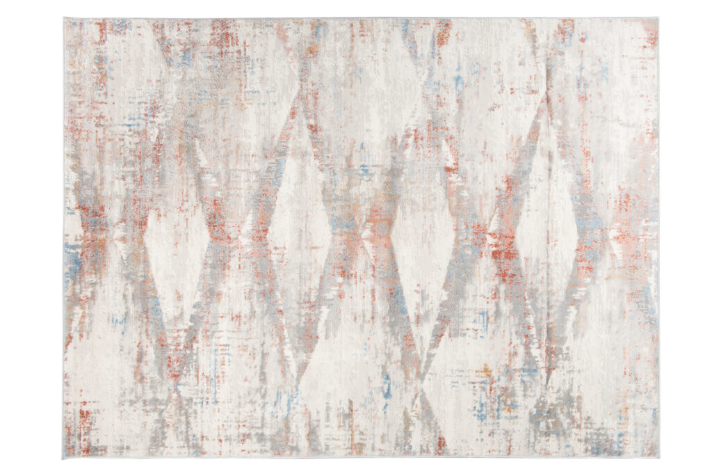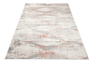 Nowoczesny dywan z serii Valley zachwyca swoim efektownym wzorem, który delikatnie lśni dzięki dodatkowi poliestru. Kremowa baza w połączeniu z pomarańczowymi i niebieskimi prześwitami tworzy ciekawą i niebanalną całość. Na środku dywanu znajdują się symetryczne geometryczne kształty, które świetnie oddają nowoczesnego ducha tego wyjątkowego produktu. Dywan idealnie sprawdzi się we wnętrzach nowoczesnych, z artystyczną nutą i nieoczywistymi dodatkami. Dzięki neutralnym kolorom do dywanu można dobrać ozdoby o intensywnych, odważnych kolorach. Produkt cechuje się wysoką jakością wykonania dzięki silnemu i odpornemu na uszkodzenia włosiu z polipropylenu.