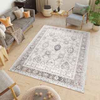 Dywan Valley podkreśli charakter wnętrz w stylu orientalnym. Stonowane barwy skomponują się z wyposażeniem w kolorach bieli, beżu, szarości i brązu. Można zestawić go też z drewnem w różnych odcieniach. Jako dywan do salonu nada pomieszczeniu przytulności i wprowadzi do niego harmonię. Złożony symetryczny wzór korzystnie zaprezentuje się w zestawieniu z jednolitymi kolorystycznie meblami.