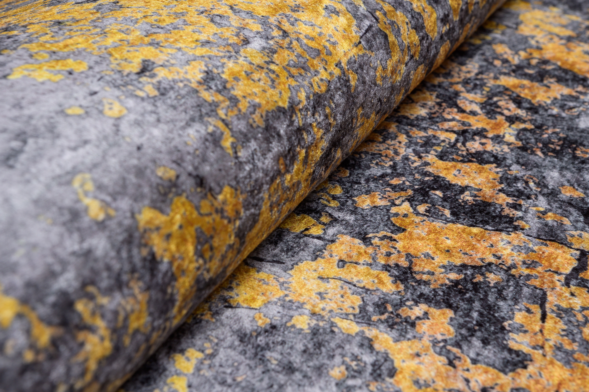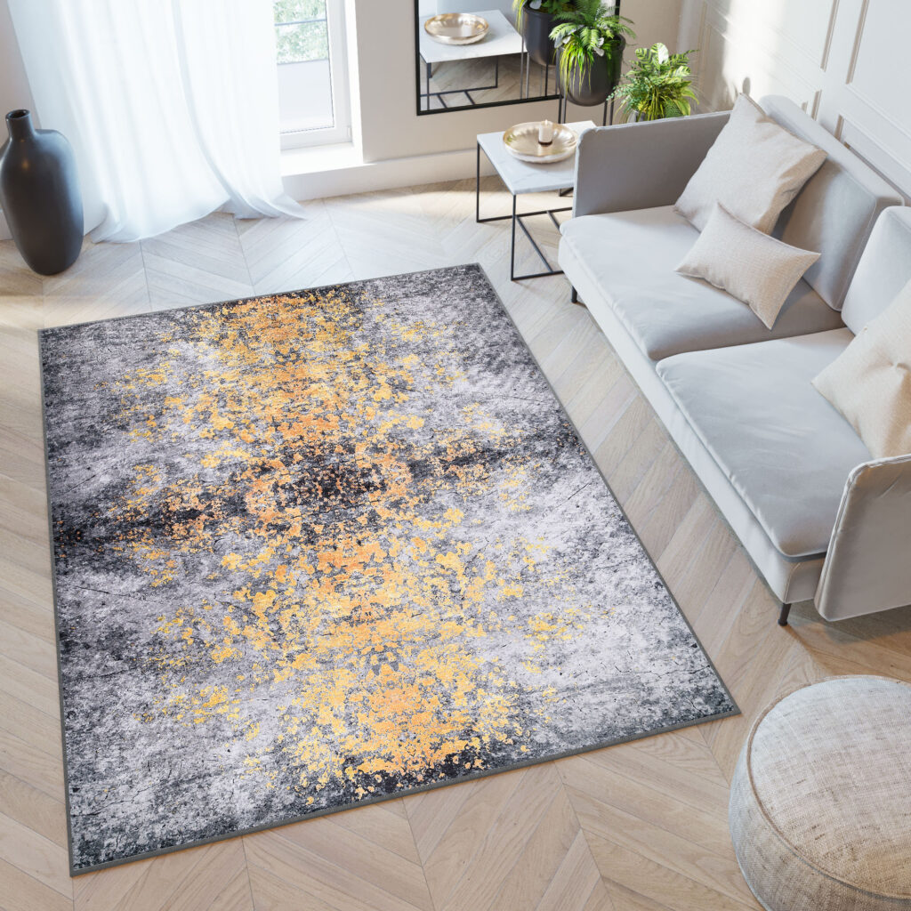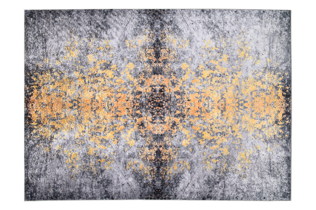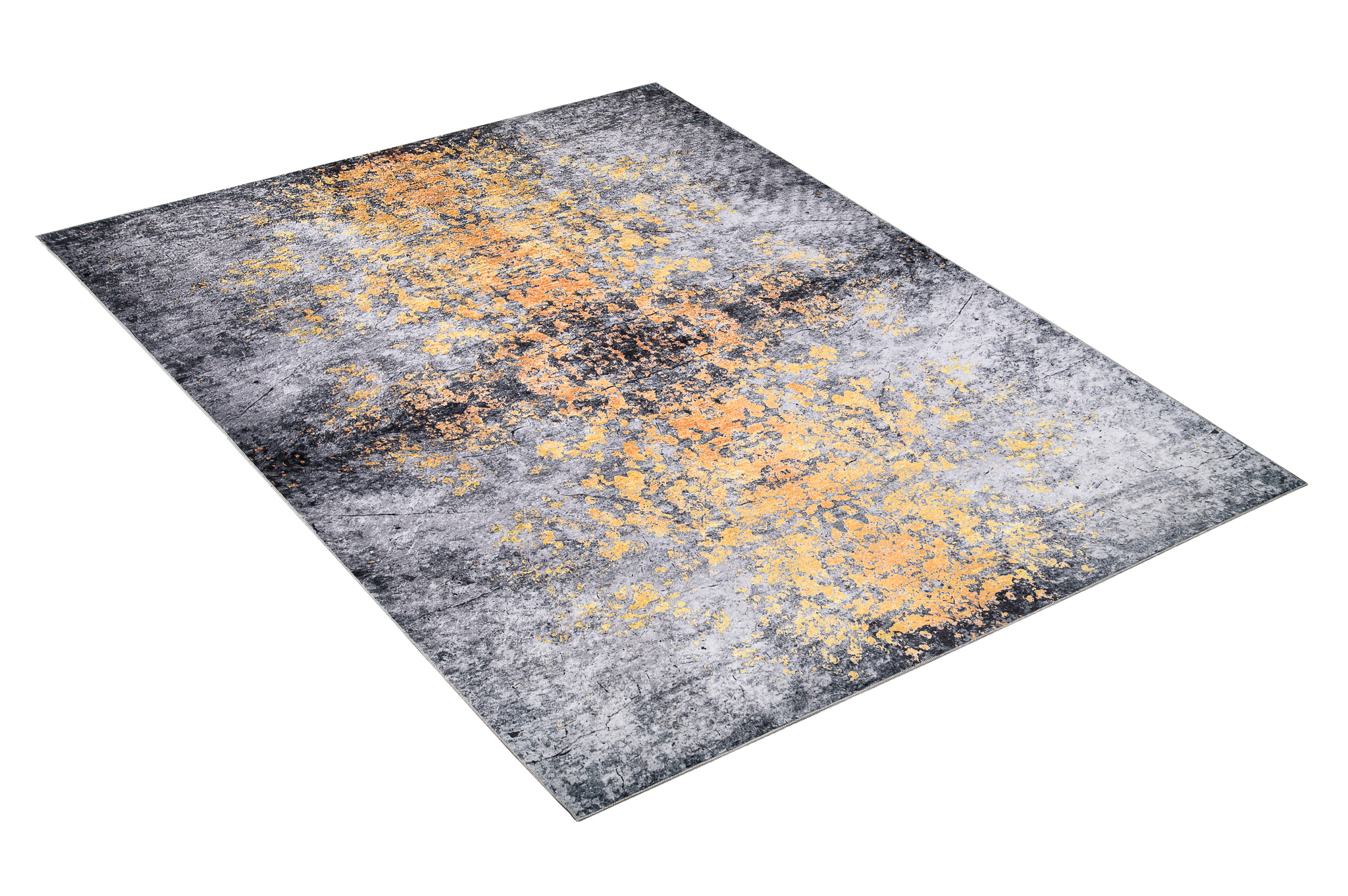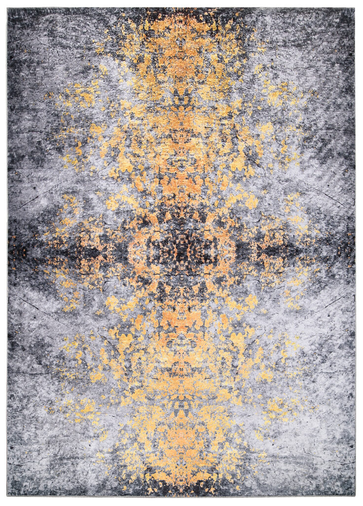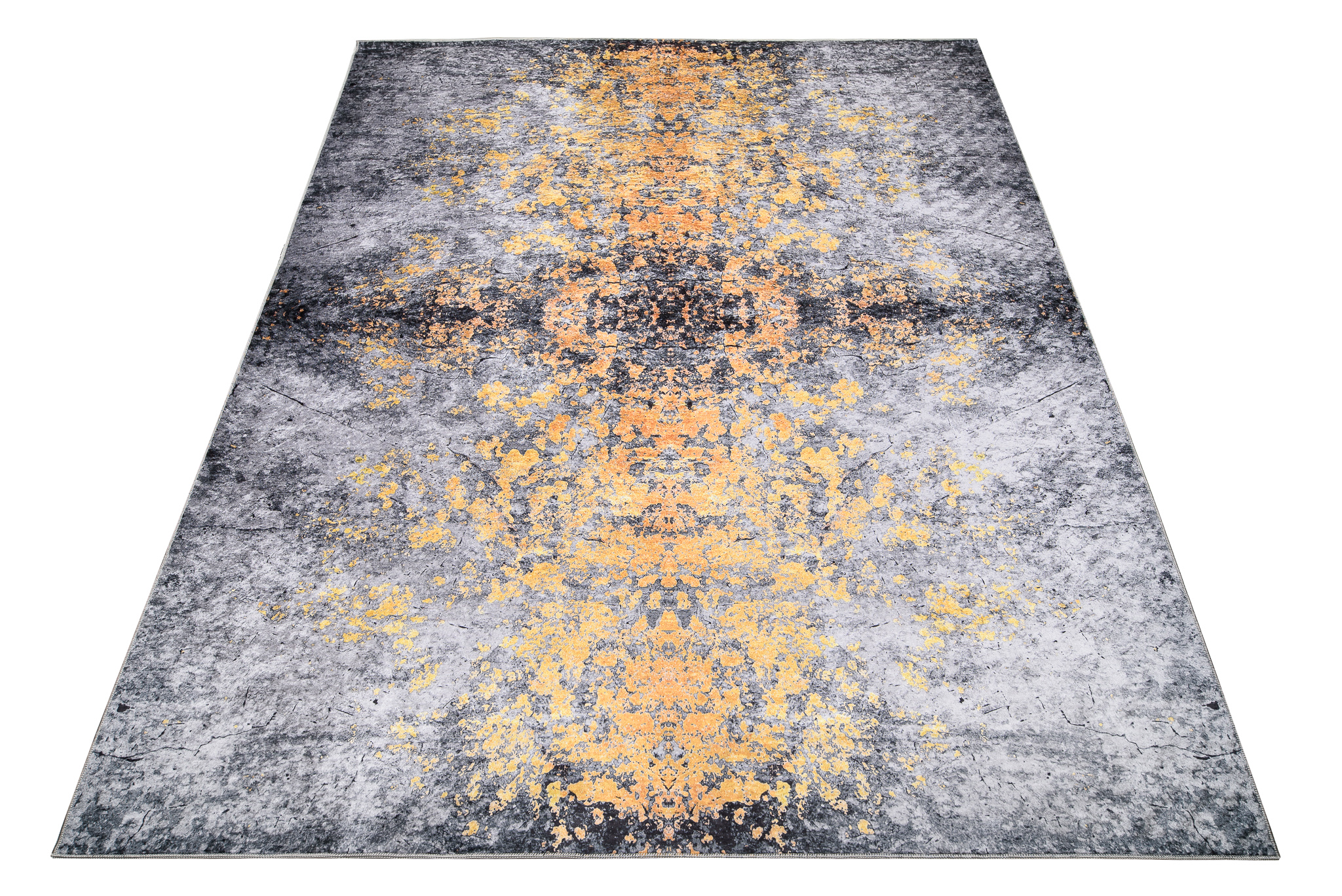Ten ciemnoszary dywan z abstrakcyjnymi, pomarańczowymi akcentami to efektowna propozycja dla osób ceniących odważne połączenia kolorów i nowoczesny styl. Głęboka szarość tworzy elegancką bazę, natomiast intensywne pomarańczowe detale w abstrakcyjnym układzie nadają mu wyrazistości i dynamiki, ożywiając przestrzeń. Ten ciemnoszaro-pomarańczowy dywan sprawia, że każde pomieszczenie nabiera niebanalnego charakteru i stanowi interesujący akcent dekoracyjny.