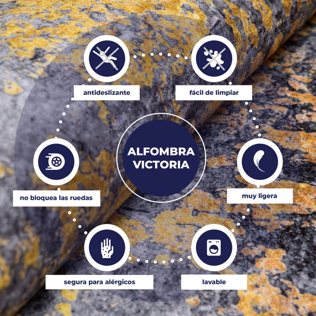 Idealnie odnajdzie się w nowoczesnych i industrialnych aranżacjach, gdzie geometria i wyraziste kolory podkreślają indywidualny styl wnętrza. Świetnie wygląda na jasnych podłogach, na których szarość dywanu tworzy kontrast, a pomarańczowe wzory dodają energii. Dywan z kolekcji Victoria charakteryzuje się wysoką jakością wykonania, co gwarantuje jego trwałość i komfort codziennego użytkowania, a antypoślizgowy spód zapewnia stabilność i bezpieczeństwo.
