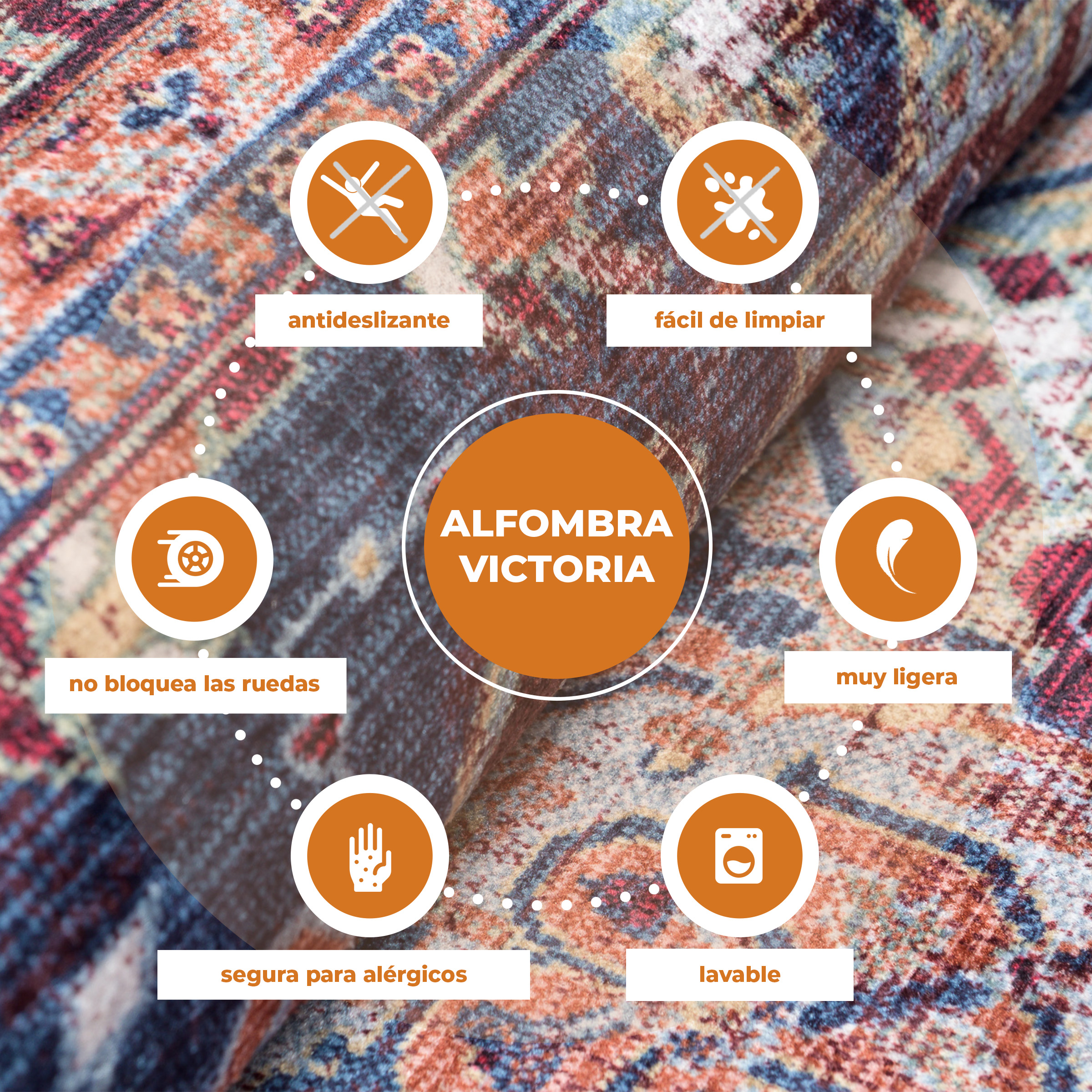 Antypoślizgowe dywany drukowane z kolekcji Victoria zachwycą wszystkich miłośników tradycyjnego stylu. Intensywne kolory i niezwykłe modne wzory będą doskonale wyglądać w sypialni lub salonie zarówno w nowoczesnym jak i tradycyjnym stylu.