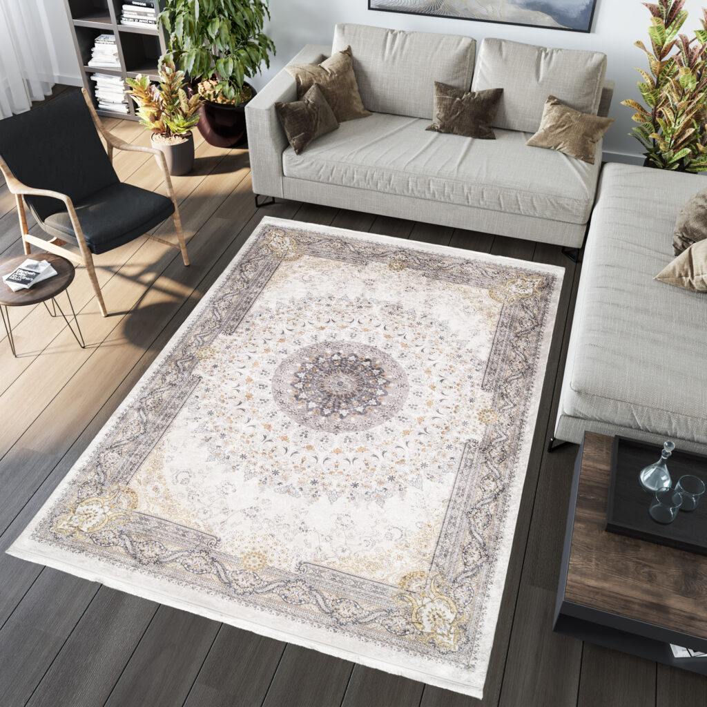 Dywan Victoriaz Frędzlami Kremowo Brązowy Rozeta