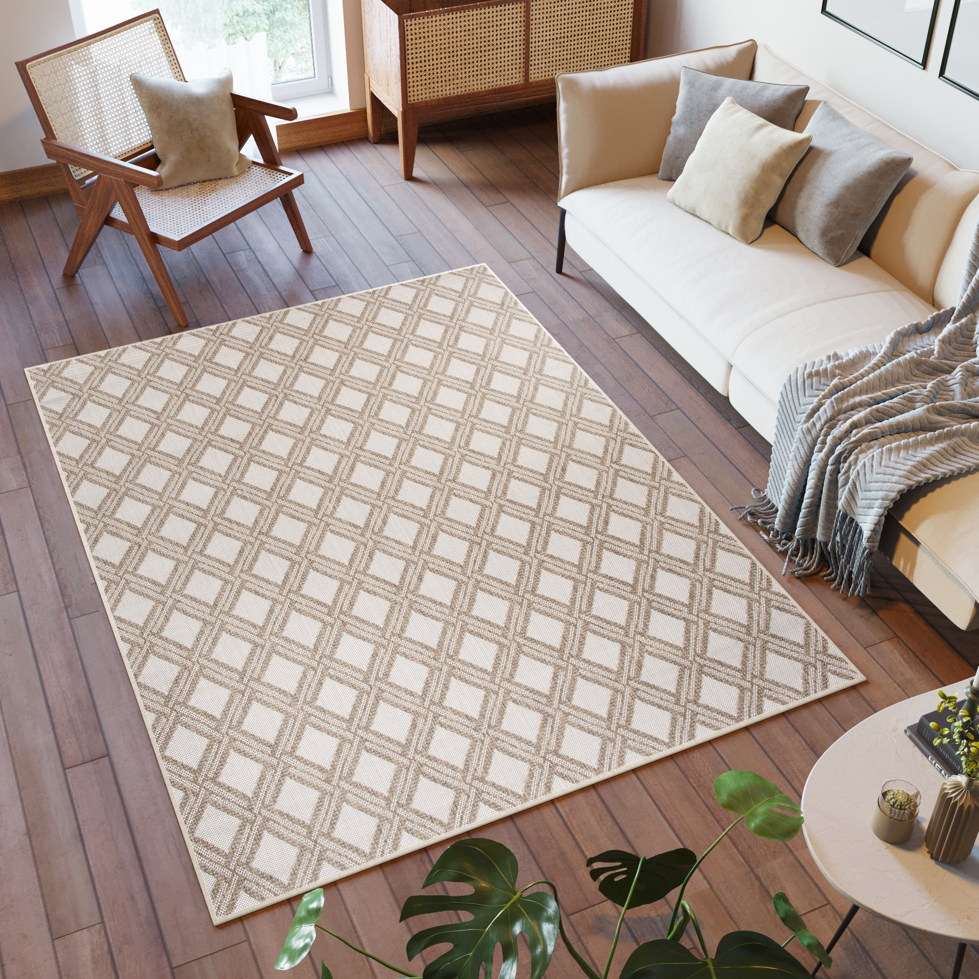 Dywan ZewnętrznyCapri Beżowy Geometryczny Krata