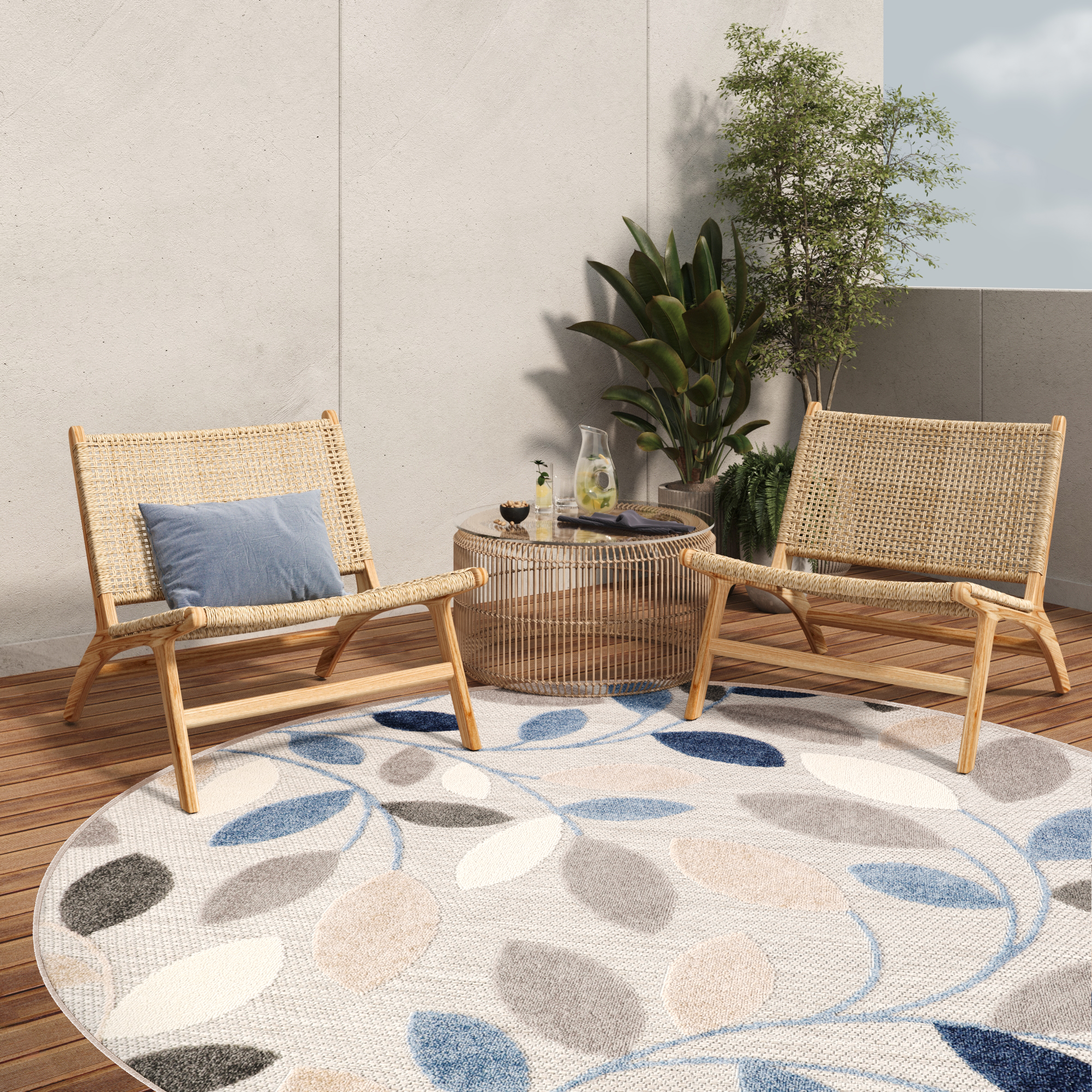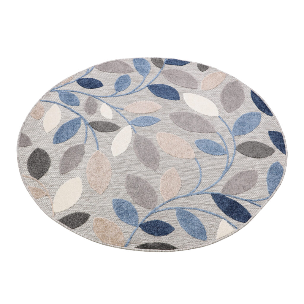 Dywan ZewnętrznyPatio Okrągły Szary Niebieski Liście