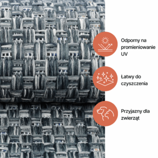 Bez względu na to, czy dywan Verano znajduje się w salonie, na tarasie, czy w ogrodzie, zawsze pozostanie czysty i świeży. Dzięki zastosowanym materiałom, dywany są niezwykle łatwe do czyszczenia – wystarczy przetrzeć je wilgotną ściereczką lub spłukać wodą.