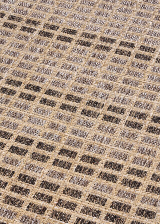 Wzór oparty na geometrycznej siatce w odcieniach beżu, brązu i głębokiego grafitu nadaje mu elegancki, a jednocześnie uniwersalny charakter. Idealnie pasuje do przestrzeni w stylu nowoczesnym, loftowym, japandi oraz skandynawskim. Harmonijnie komponuje się z meblami z jasnego drewna, betonu architektonicznego i naturalnych tkanin w kolorach szarości, czerni, ecru oraz ciepłych odcieni ziemi.