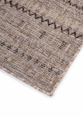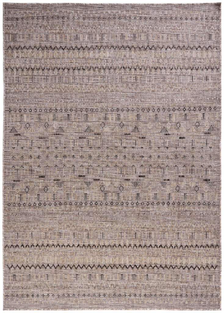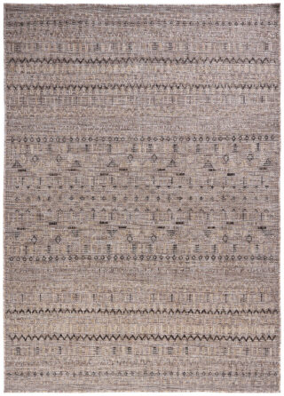 Poznaj dywan Yucana – wyjątkowe połączenie inspirowanego naturą designu i praktycznego zastosowania. Subtelny wzór o etnicznych motywach plemiennych w odcieniach beżu, brązu i głębokiego grafitu nadaje przestrzeni charakteru, nie przytłaczając jej wizualnie. To model stworzony zarówno do wnętrz, jak i na zewnątrz – idealny na taras, balkon, patio czy do salonu.