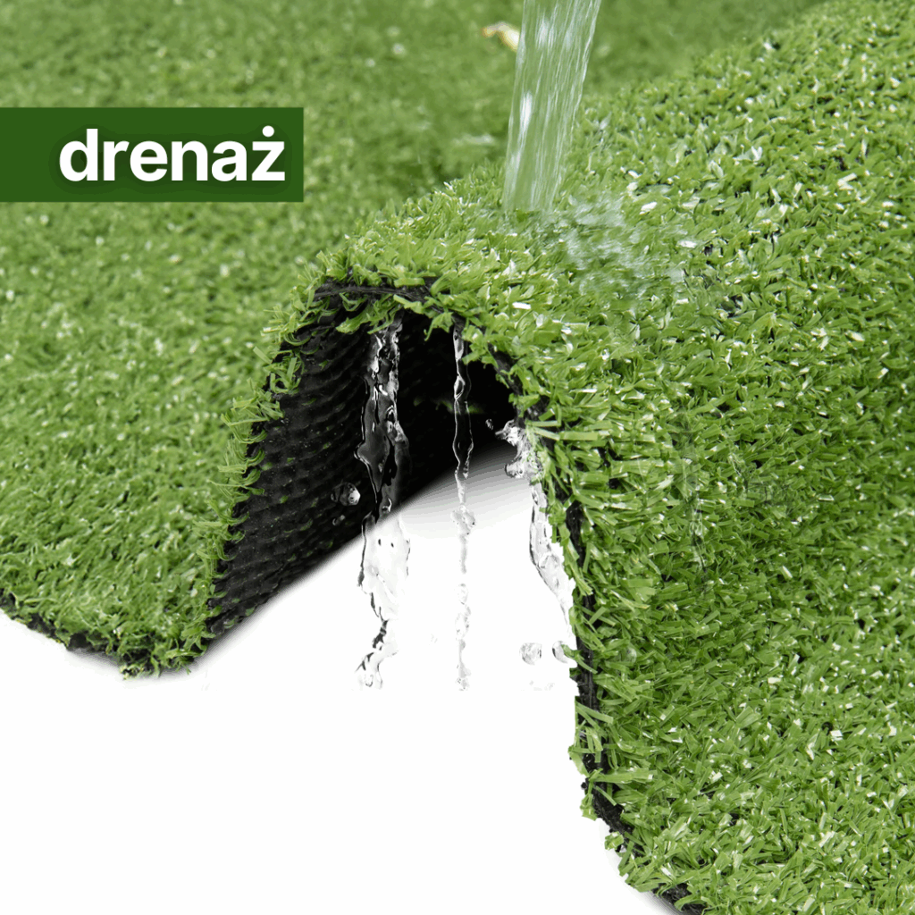 - Łatwa w utrzymaniu – Dzięki mikroporom woda swobodnie przenika pod powierzchnię trawy, co eliminuje problem kałuż. Jej struktura pozwala na łatwe czyszczenie, co czyni ją idealnym wyborem dla osób ceniących wygodę.