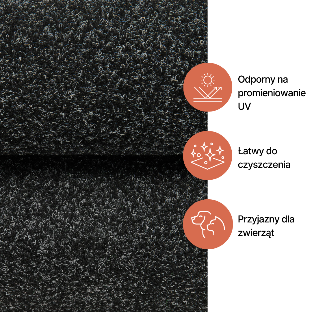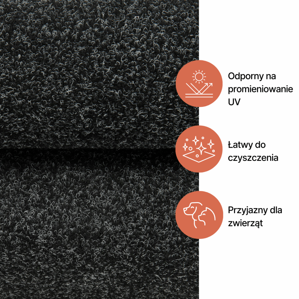 Szukasz eleganckiego, stylowego rozwiązania na swój balkon, taras lub patio? Wykładzina dywanowa Garden w kolorze antracytowym to idealne połączenie nowoczesnego designu i funkcjonalności. Jej ciemna, subtelna barwa pasuje do różnych aranżacji, nadając przestrzeni wyjątkowy charakter.