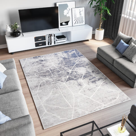 Dywan SkySzary Niebieski Abstrakcyjny Przetarcia