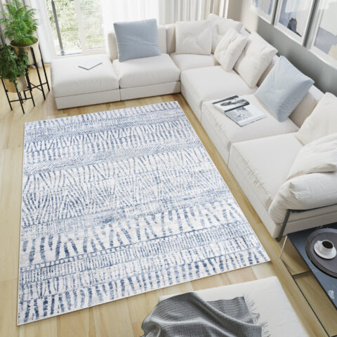 Dywan SkyNiebieski Kremowy Etniczny Paski