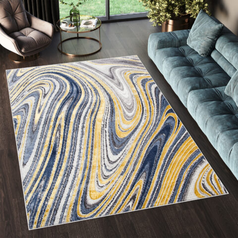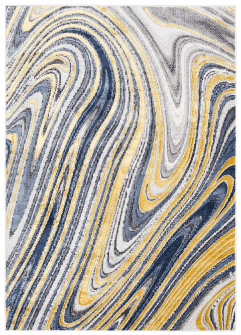 Dywan ShineZłoty Niebieski Szary Abstrakcyjny Efekt 3D