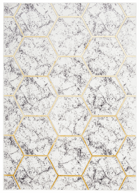 Dywan ShineSzary Złoty Geometryczny Sześciokąt Efekt 3D