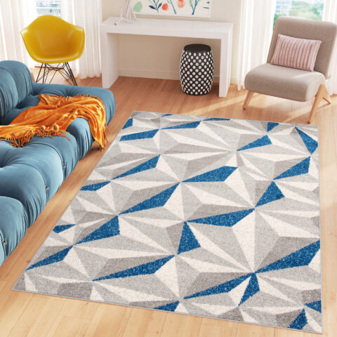 Dywan ShineSzary Niebieski Złoty Geometryczny Efekt 3D