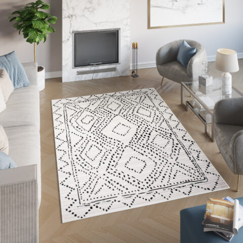 Dywan JunoKremowy Czarny Geometryczny Kropki