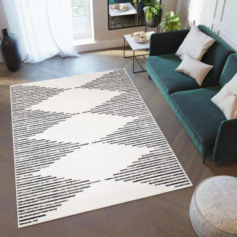 Dywan JunoKremowy Czarny Geometryczny Linie