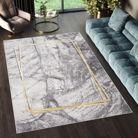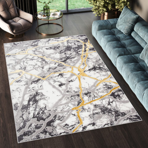 Dywan ShineSzary Złoty Abstrakcyjny Marmur Efekt 3D