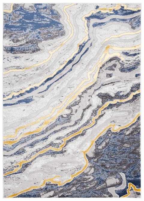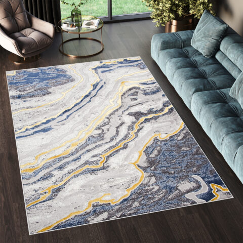 Dywan ShineNiebieski Szary Złoty Abstrakcyjny Efekt 3D