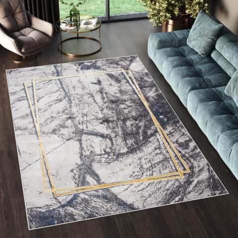 Dywan ShineNiebieski Szary Złoty Nowoczesny Efekt 3D