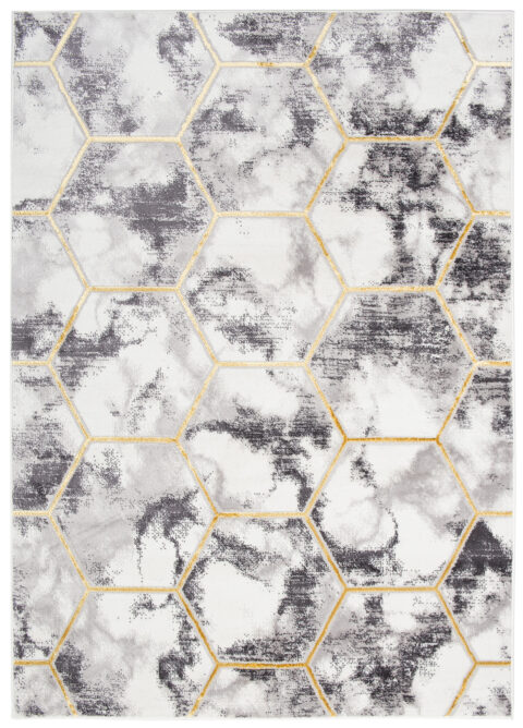 Dywan ShineSzary Złoty Sześciokąt Geometryczny Efekt 3D
